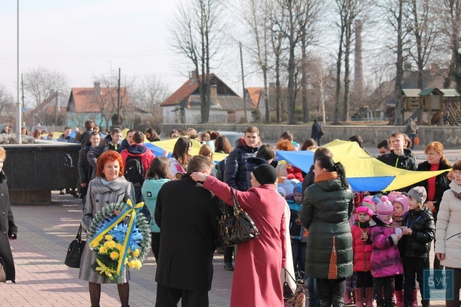 До заходу долучилась молодь міста, студенти пронесли 50-ти метровий український стяг, наймолодші мешканці прийшли із національною символікою, - пише БУГ.