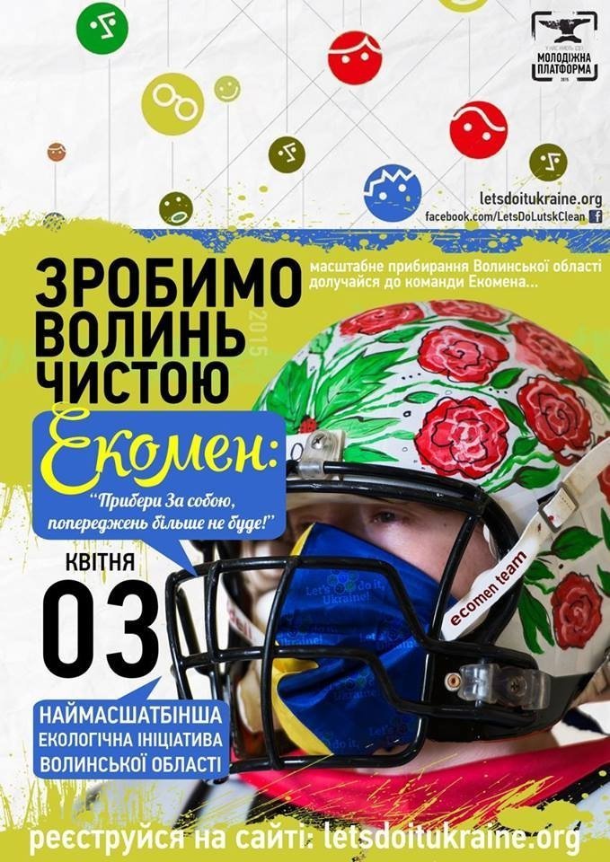 Нагадуємо, що всеукраїнська акція «Зробимо Україну чистою!-2015» є частиною всесвітнього руху «Lets Do It World», що об’єднав 11 мільйонів людей в 112 країнах для того, щоб піклуватися про екологію нашої планети. Це щорічна одноденна всеукраїнська соціально-екологічна акція з прибирання та благоустрою засмічених зелених зон та місць громадського відпочинку.