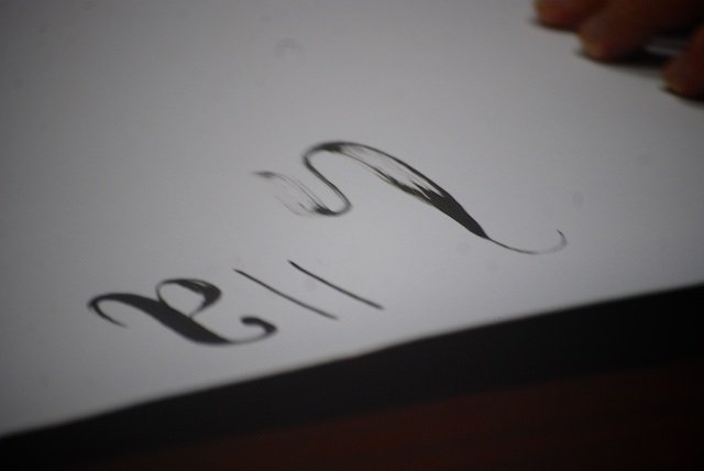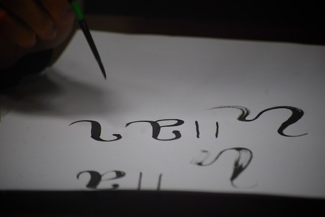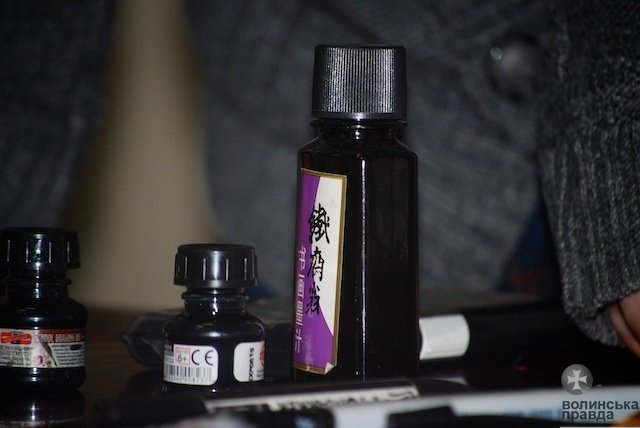 Також художник представив різноманітні інструменти для каліграфії, чеську та японську туш тощо. На його думку, туш різних кольорів має різний «характер» під час каліграфії.