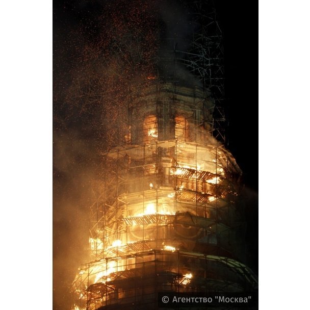 Площа пожежі становить 100 квадратних метрів. Передбачається, що пожежа виникла внаслідок замикання в теплових гарматах, які сушили фасад будівлі. Пожежа почалася у верхній частині дзвіниці, яка знаходиться на реконструкції. Вона закрита будівельними лісами, передає Медуза.
