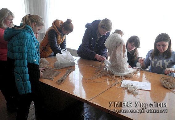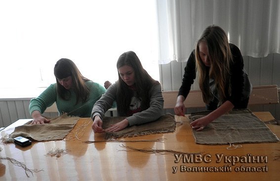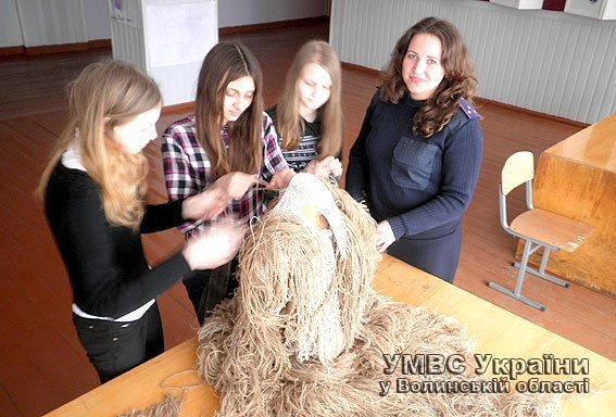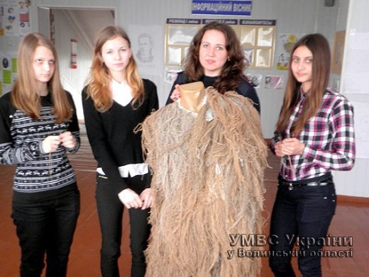 Разом із оперуповноваженим кримінальної міліції у справах дітей любешівського райвідділу міліції Наталією Дяк школярі вирішили власними руками зробити маскувальний костюм-«кікімору» для українських бійців, які перебувають у зоні проведення антитерористичної операції, - повідомляє прес-служба УМВС України у Волинській області.