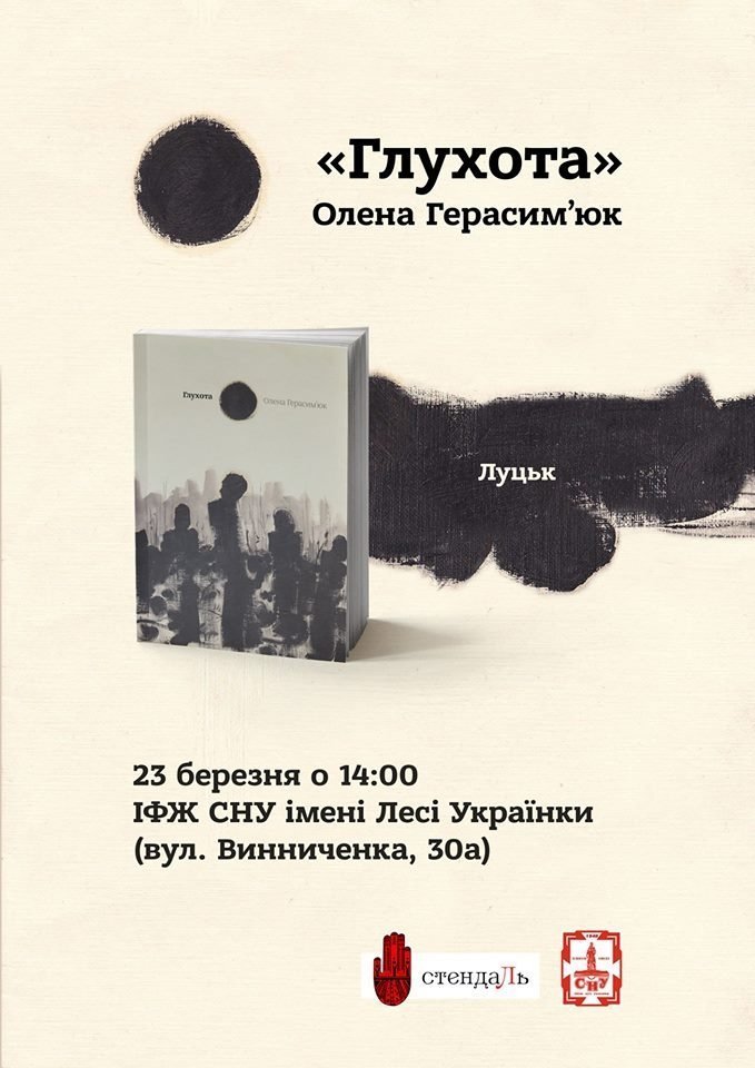 "Збірка «Глухота» (вид-во «Смолоскип», 2014) – це поезія на межі, із надривом і фольклором. «Глухота» – це світ навколо, який не здатен почути Слово. «Глухота» – це можливість для 12-ти українських міст перейти межу пізнання поезії", - пишуть організатори.