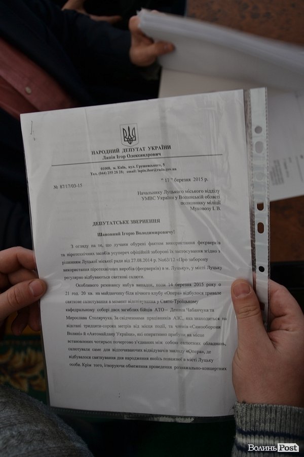 У Луцьку біля нічного клубу «Опера» пускали феєрверки, коли у Свято-Троїцький собор заносили тіла українських бійців.