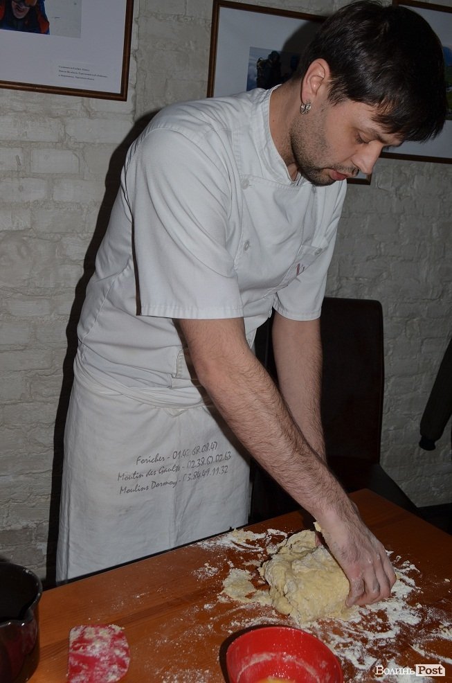На майстер-класі готували «тісто солодке, схоже на коровай, з родзинками та горішками». Надзвичайно важливим елементом для випічки, за словами Дениса, є спеціальна закваска, яка має настоюватися один день.