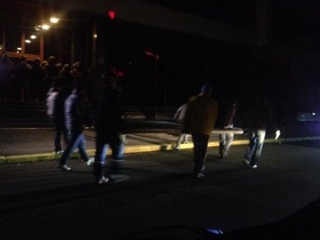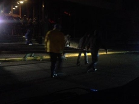 Як повідомляє Hromadske TV, будівельники принесли ще кілька секцій металевих решіток.
