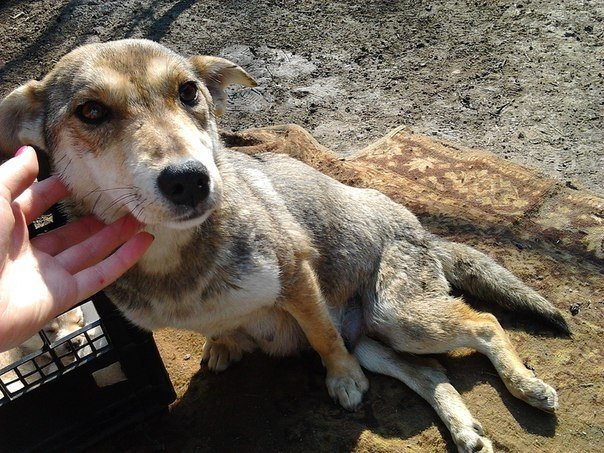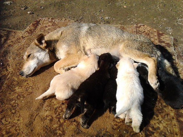Одразу після падіння тварина поповзла годувати своїх малюків – сімох цуценят, які на той момент ще були з заплющеними очима. Пересуватися собака може лише на передніх лапах і це коштує їй величезних фізичних зусиль.