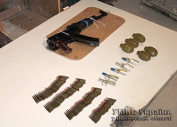 Під час обшуку у підвалі будинку, де мешкав волинянин, правоохоронці вилучили автомат Калашникова, п’ять гранат Ф-1 та запали до них.