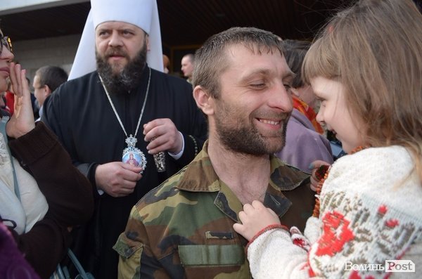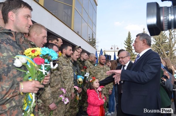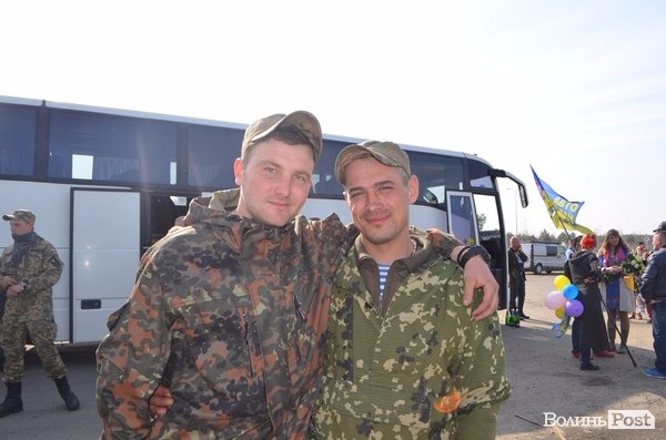Колона автомобілів з патрульними службами ДАІ супроводжували автобуси з бійцями аж до Театрального майдану в Луцьку, де на них вже чекали родичі, друзі та багато інших лучан.