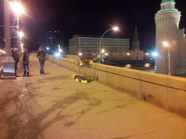 Великий Москворецький міст біля Кремля повністю зачистили від імпровізованого меморіалу, а на ранок люди знову понесли туди квіти.
