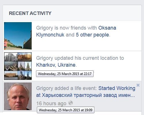 Про те, що харків'янин Григорій - це вигаданий персонаж, свідчить і безліч непрямих ознак. Наприклад, в перші кілька днів після реєстрації він розмістив у соціальній мережі більше 20 записів. Після цього його активність дещо знизилася, і за кілька минулих місяців він розмістив тільки 9 постів. З трьох десятків записів Григорія більша частина - це перепис зі сторінок популярних видань або блогерів.