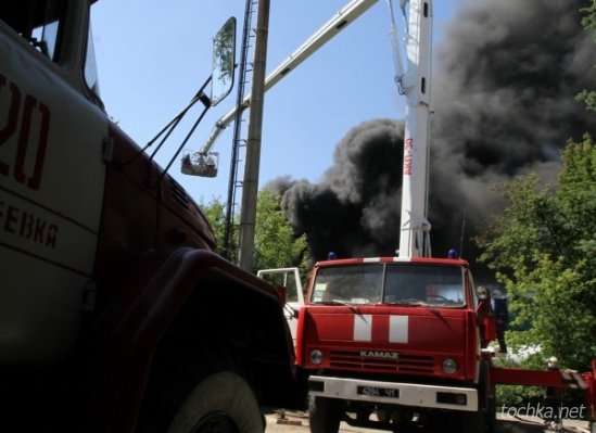 У Макіївці на Донеччині на заводі лакофарбових виробів сталася масштабна пожежа: горять та вибухають ємності з виробами з лаку і фарби.