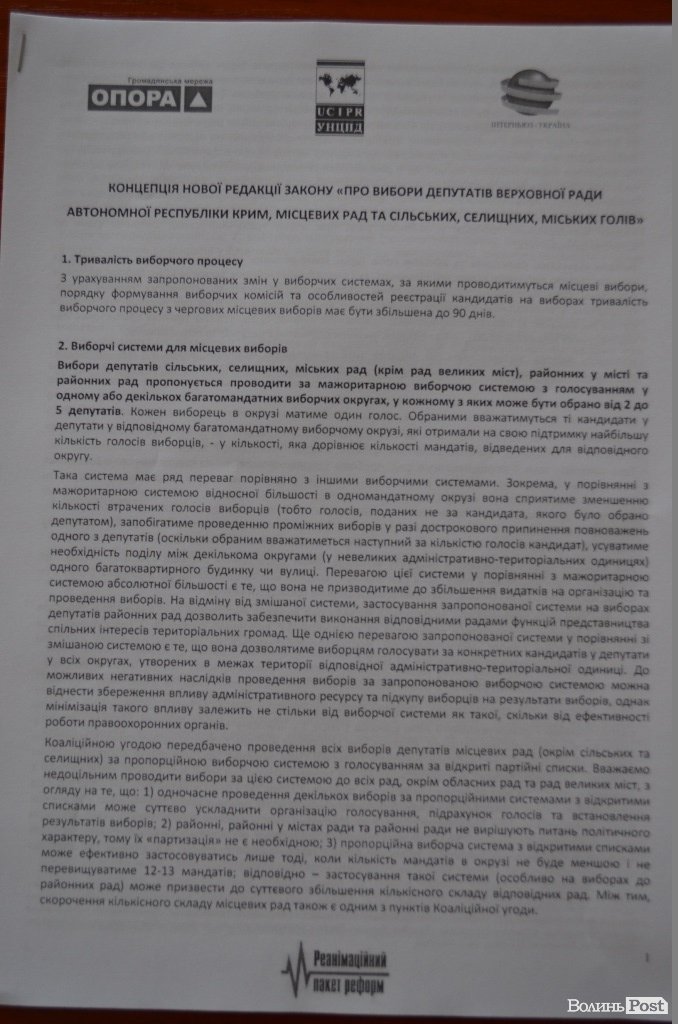 У Луцьку за участі експертів, депутатів та громадськості відбулась презентація концепції нової редакції закону «Про вибори депутатів Верховної Ради, Автономної Республіки Крим, місцевих рад та сільських, селищних, міських голів».