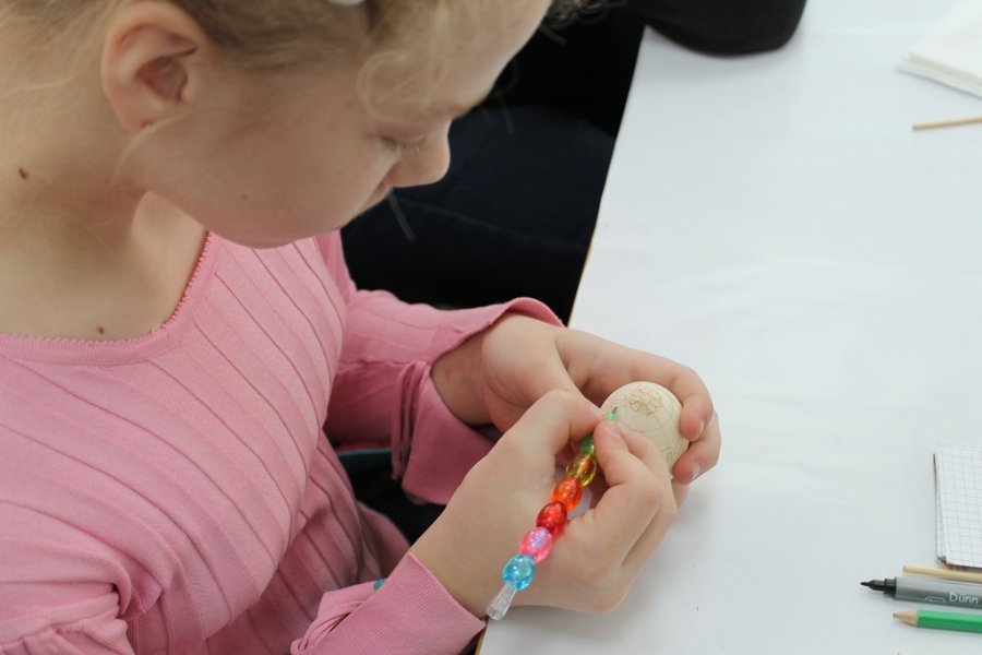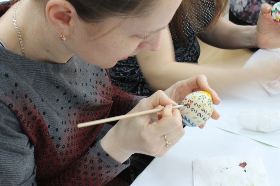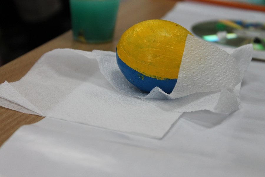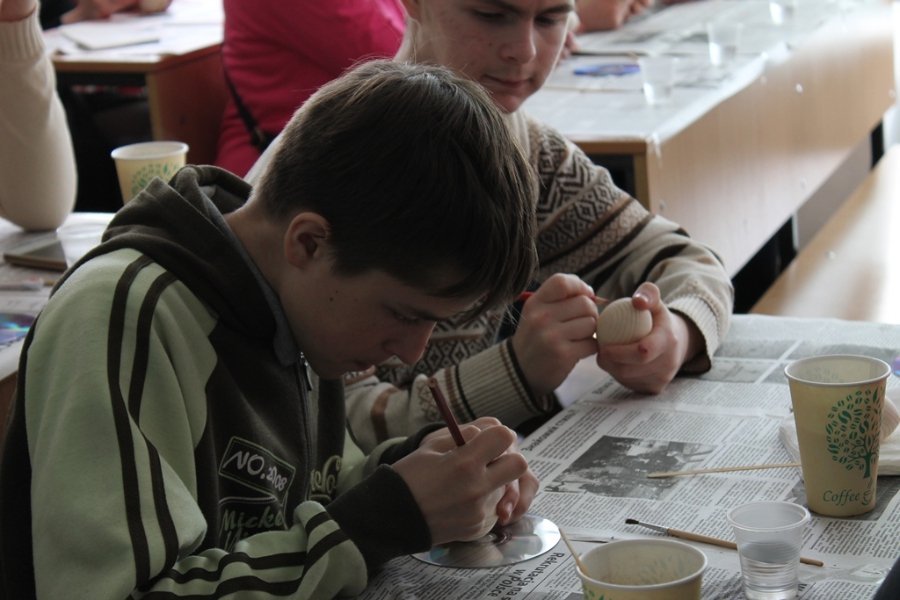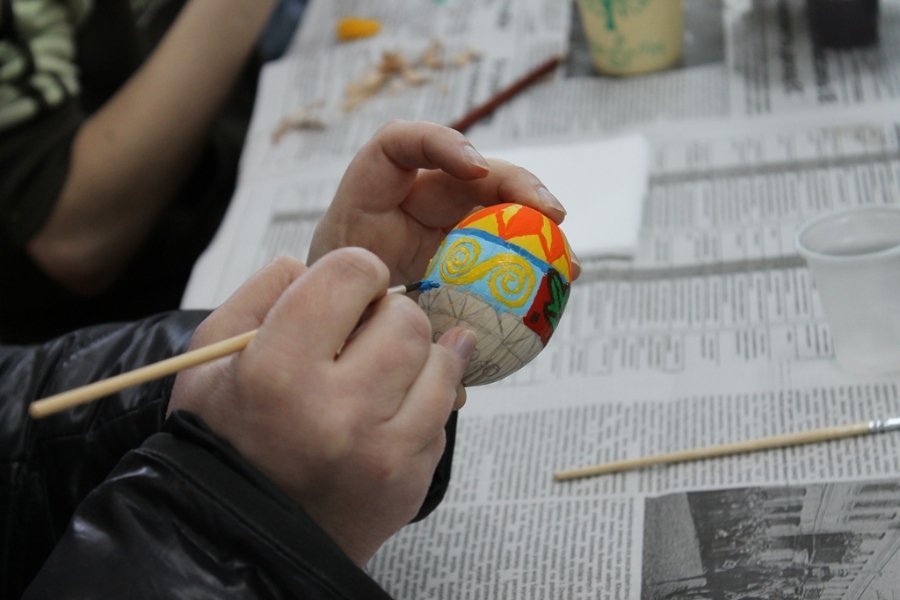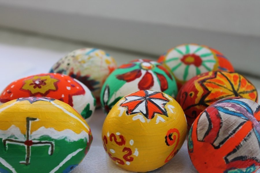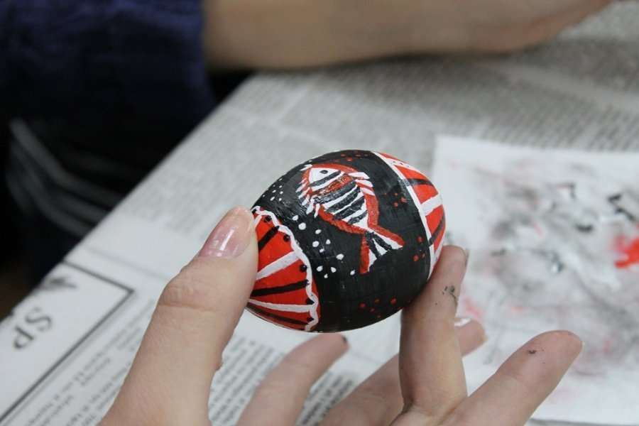 Для розписів було видано дерев’яні яйця та фарби. За традицією, яйця спочатку розділили на чотири частини – чотири сторони світу, лінії яких символізують собою хрест.