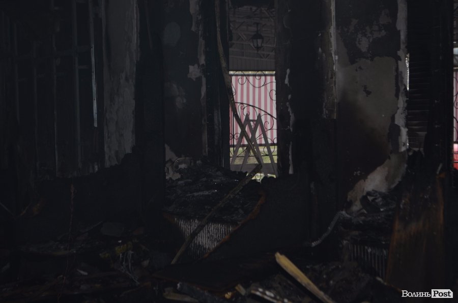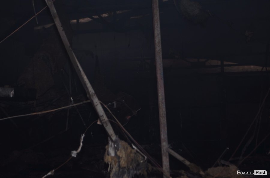 Працівники винесли з кухні все, що вціліло: нечисельні одиниці пляшок з алкогольними напоями і дещо з продуктів. Зала колишнього розважального закладу вигоріла дотла.