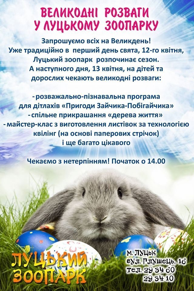 У комунальному підприємстві "Луцький зоопарк" відбудуться великодні розваги.