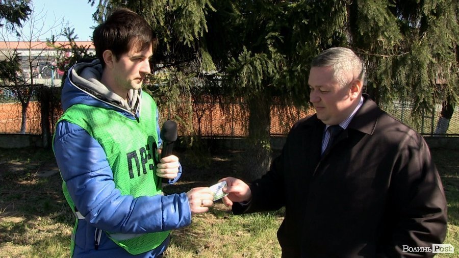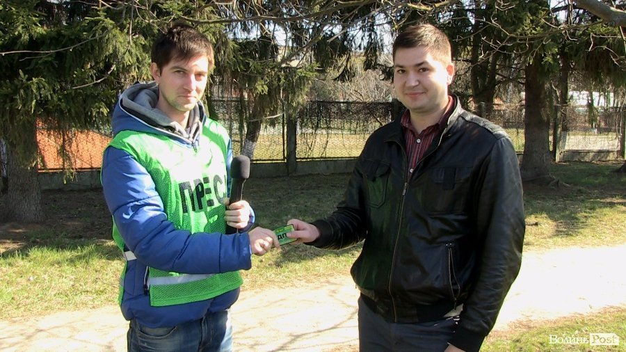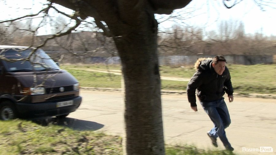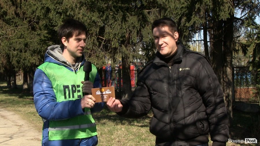 Він першим приїхав на Карбишева, саме тут цього разу була відзнята відеозагадка. За умовами конкурсу участь могли брати лише ті водії, на чиїх автівках була наклейка з логотипом ВолиньPost. У Богдана була наклейка і він приїхав першим, тому й отримав головний приз - 20 літрів пального.