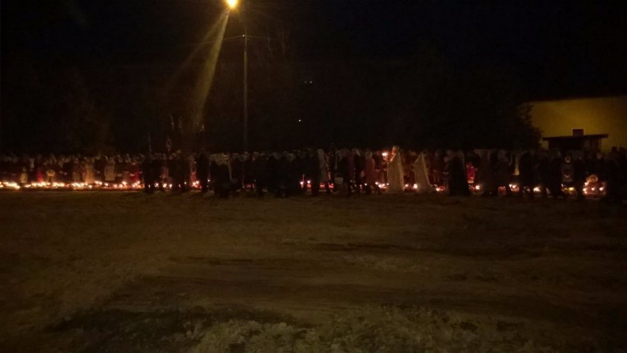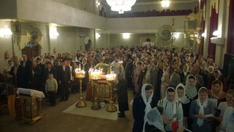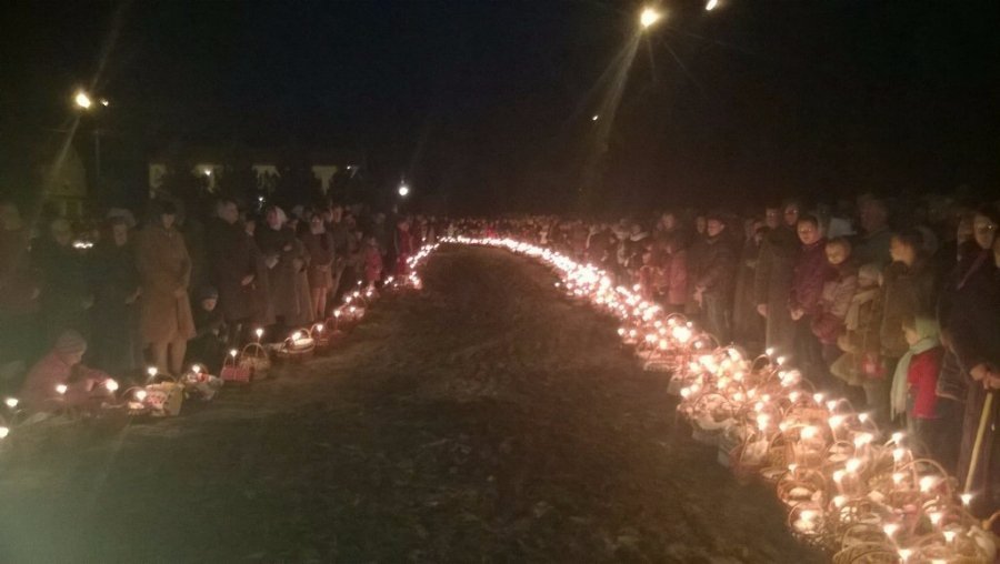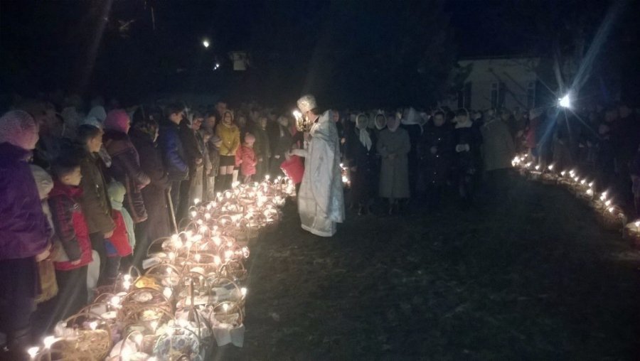 Рівно опівночі в актовому залі районного Будинку культури розпочалася Пасхальна відправа. Швидко пролетіли миті Великоднього Богослужіння, і ось богомольці Хресною ходою крокують на улюблене місце молитви, де зустрічають їх тисячі людей, які прийшли сюди за Пасхальним благословенням, тим самим засвідчуючи непохитну віру у Воскресіння свого храму.