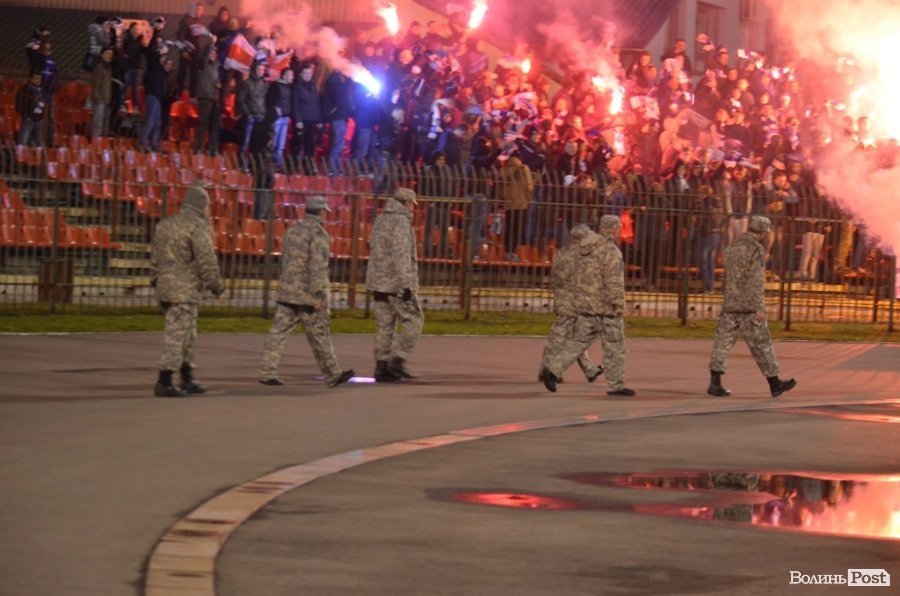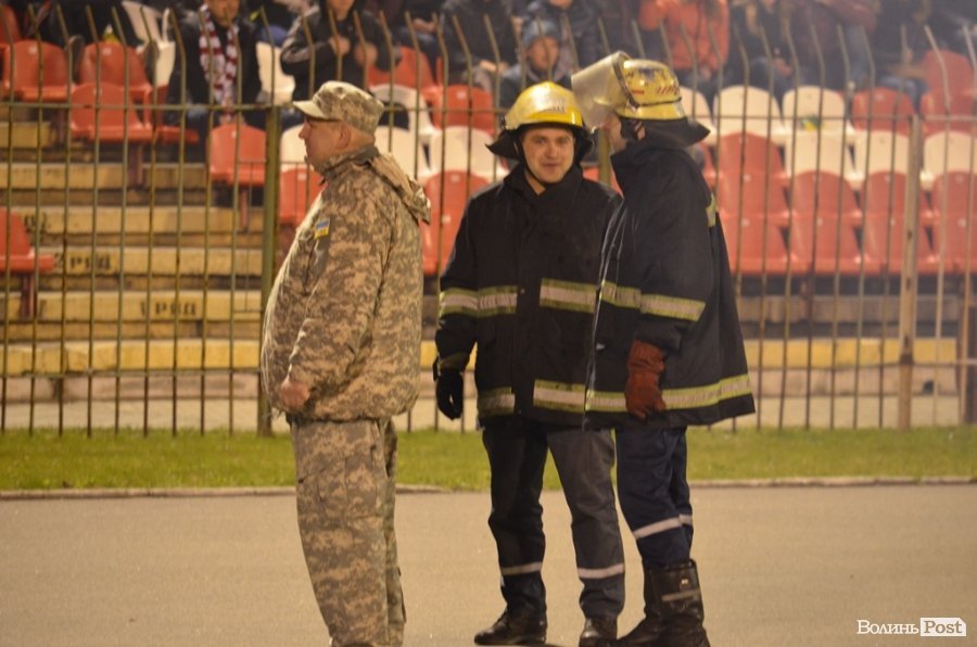 Уболівальники київського «Динамо» не давали часу для відпочинку охоронцям стадіону. Після кожного забитого голу своєю командою вони, окрім традиційних «фаєрів», кидали петарди у бік голкіпера «Волині». Аби хоч трохи заспокоїти київських вболівальників, їхній сектор оточили 12 охоронців, які посилили нагляд за фанами.