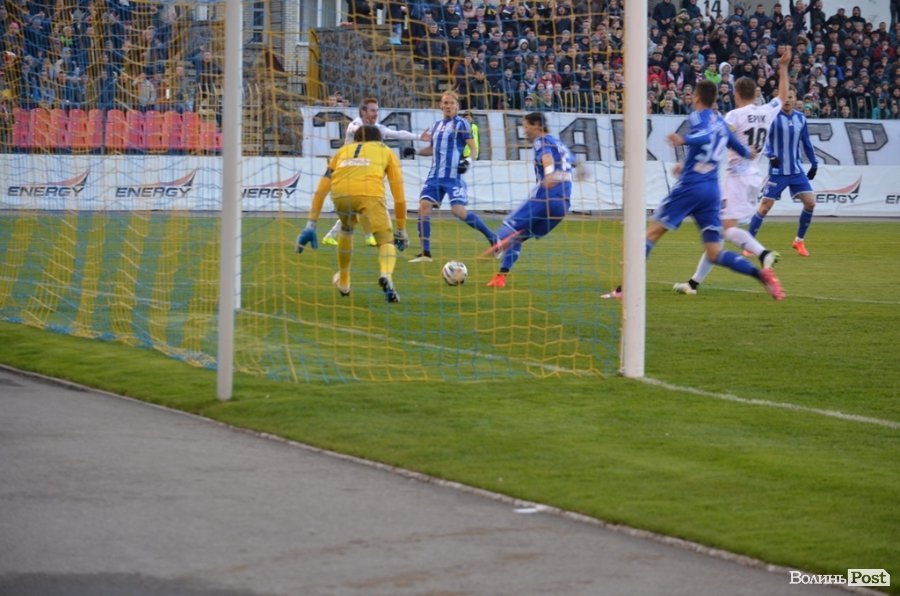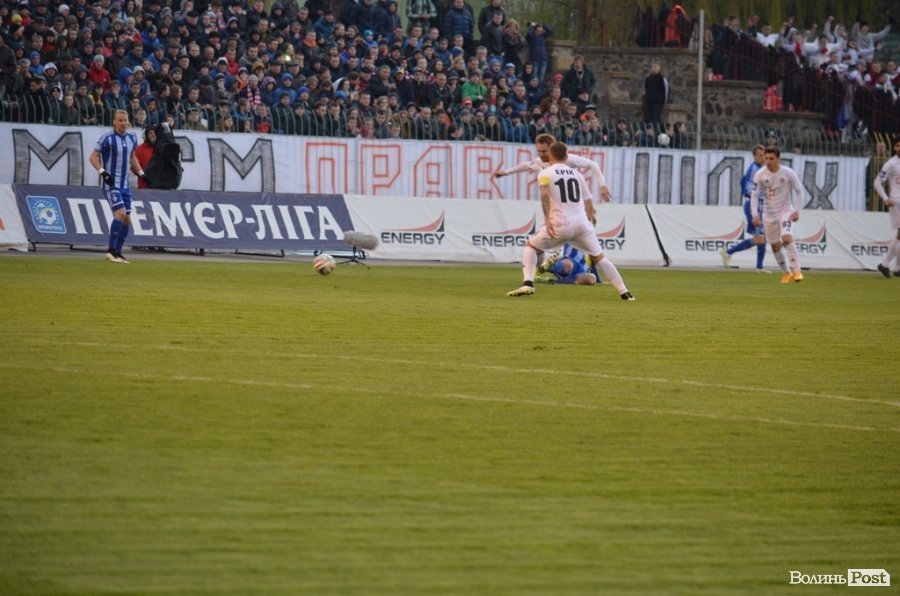 На початку першого тайму гравці ФК «Волинь» активно почали атакувати ворота суперника, після чого рефері призначив пенальті. Вже на 6 хвилині Ерік «пробив» ворота Олександра Шовковського і «Волинь» відкрила рахунок матчу. Тому перший тайм закінчився перемогою луцької команди.