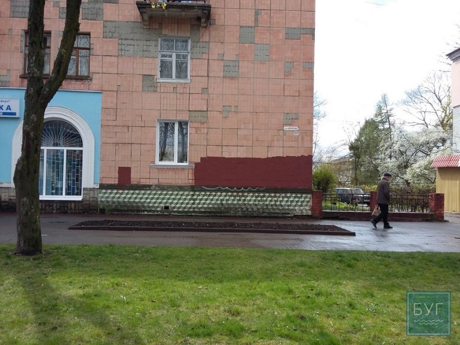 Щоправда, незважаючи на колір і структуру фасаду приміщень, на яких містилися гасла, необережними мазками поверх написів нанесли коричневу фарбу. Якість її досить сумнівна, адже стирається від дотику руки. Можна передбачити, що і змиється дощем досить швидко.