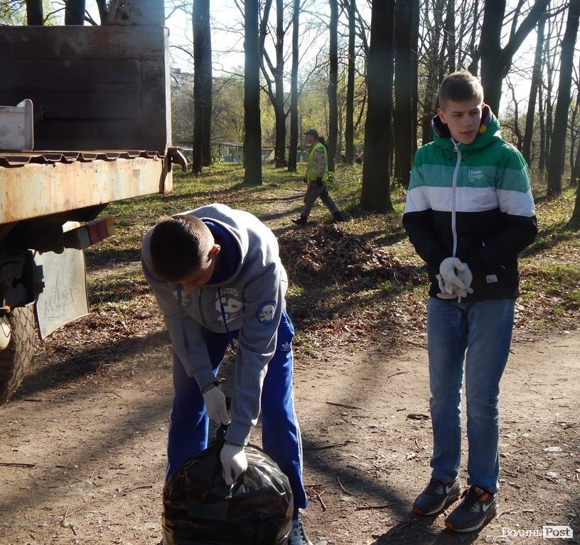 У Луцьку депутати, підприємці та школярі прибирали парк у мікрорайоні ЛПЗ. ФОТО