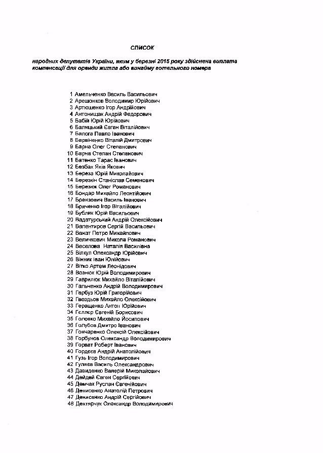 На сайті Верховної Ради опублікували список народних депутатів, котрі в березні отримали грошові компенсації на оренду житла. У документі – 180 прізвищ, пише tsn.ua.