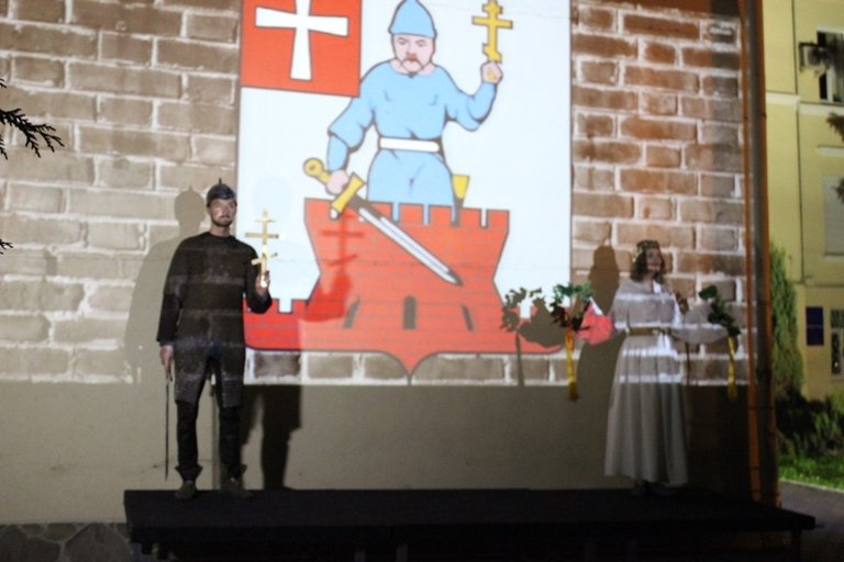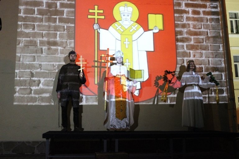 Завершилася екскурсія біля приміщення Луцької міської ради. Тут присутнім розповіли про символи нашого міста. Образу і покровителю Луцька – Святому Миколаю передували й дівчина, яка тримала у руках два віночки та воїн з мечем у руках.