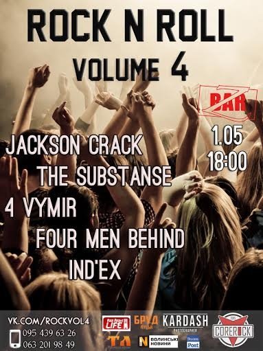 В період травневих свят організатори «Rock N`Roll vol.4» об’єднають нове покоління луцьких альтернативних гуртів на одній сцені. Кожен з п’яти гуртів, серед яких: Jackson Crack, The Substanse, 4 Vymir, Four Men Behind та INDEX – представить найновіший пісні. «Jackson Crack» та «INDEX» вперше презентуватимуть щойно записані сингли. «Four Men Behind» гратимуть пісні зі свого першого ЕР альбому, записаного ще восени минулого року. В свою чергу «The Substanse» зіграють кілька пісень з нового альбому, якого поки ще немає ні в мережі, ні на фізичних носіях.
