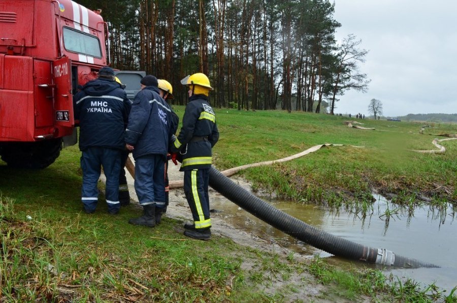 Вже за кілька хвилин стало зрозуміло, що без допомоги професійних пожежних не обійтися, відтак про надзвичайну подію повідомили рятувальників Ковельського міськрайвідділу ДСНС області. Через десять хвилин до місця імітованої пожежі прибули бійці 4-ої державної пожежно-рятувальної частини й узялися до приборкання вогню. Встановивши пожежну насосну станцію на водозбір до річки Турії, рятувальники проклали магістральну лінію та подали чотири лафетні стволи на гасіння.