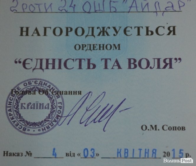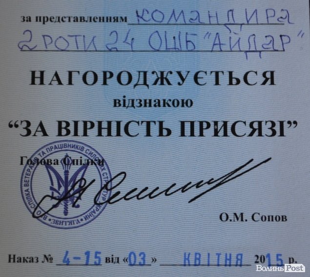 Саме міроприємство правильне і потрібне, але, напевно, воїнів правильніше було б нагороджувати від імені командира батальйону "Айдар" згідно подання командира роти.