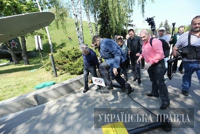 Лідер Комуністів Петро Симоненко вимушений був знеславлено тікати з мітингу в Києві. Після того, як в нього хтось кинув кефіром, Симоненко з охороною утікав до своєї машини через огорожу, схилом по траві.