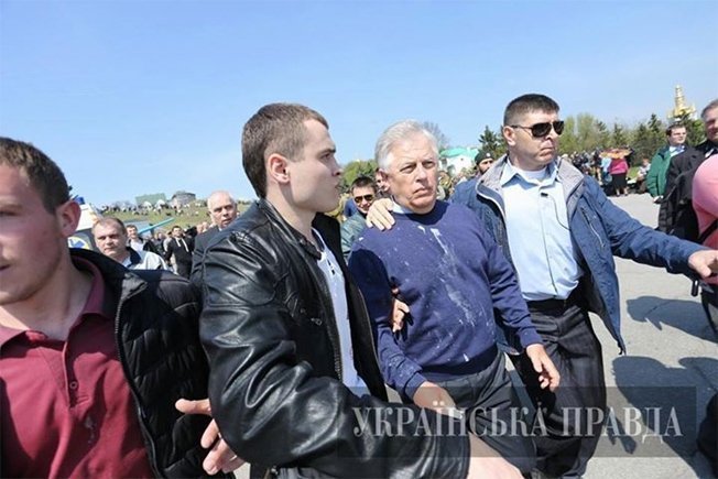 Петра Симоненка прогнали з мітинга, жбурляючи в нього кефір та вигукуючи ганебні слова в його адресу.