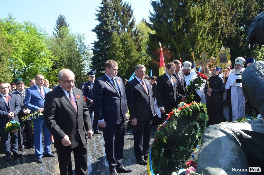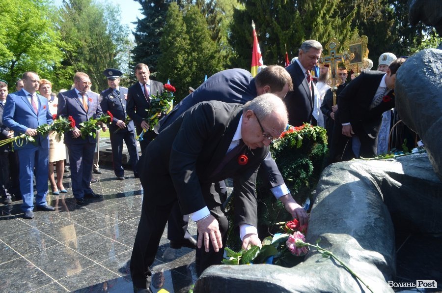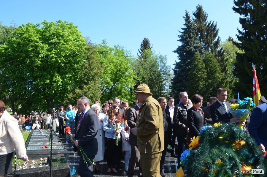 Ветерани Другої світової війни, міська влада та всі присутні лучани поклали квіти до пам’ятника невідомому солдату, що на Меморіалі Слави, в День пам'яті і примирення та перемоги над нацизмом.