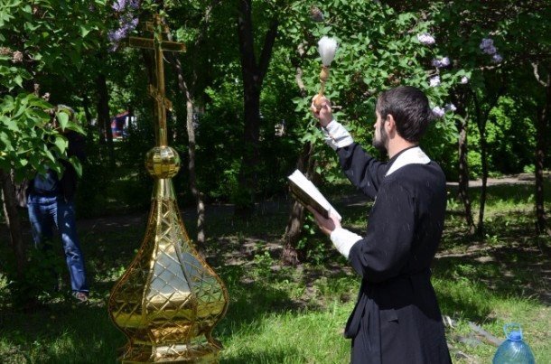 Освячення хреста та бані здійснював настоятель храму отець Володимир, який подякував бійцям батальйону «Айдар» та усім небайдужим українцям за підтримку церкви і патріотів Луганщини.