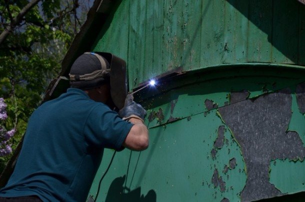 Купол та хрест з Волині прикрашатиме луганський храм, якого створили зі старого вагону. ФОТО