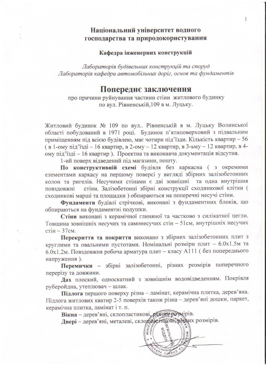Експерти оприлюднили попереднє заключення про причини руйнування частини будинку на вулиці Рівненській, 109 у Луцьку – за їх словами втратив несучу здатність між віконний простінок на першому поверсі.