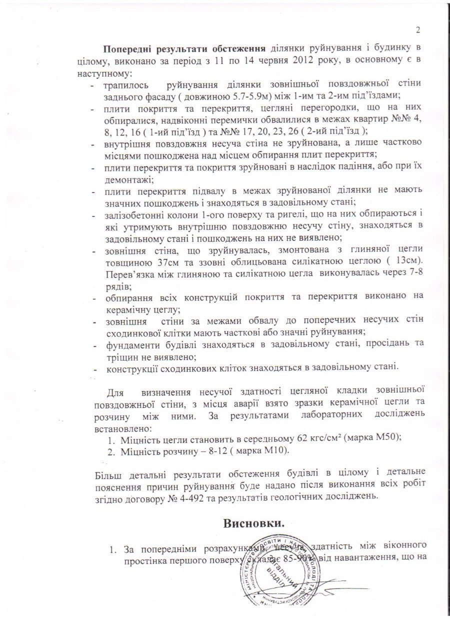 «Руйнування частини будинку викликано втратою несучої здатності міжвіконного простінка 1-го поверху (на це вказує характер і порядок падіння конструкцій)», - пишуть у заключенні експерти.