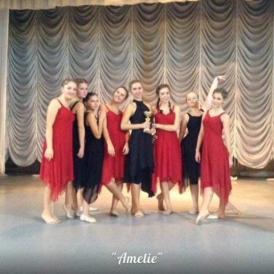 «Amelie» - новий колектив. За рік існування колективу ми створили чотири танцювальні композиції. Перший танець в стилі contemporary dance «Дзеркало душі», дебют якого пройшов на танцювальному конкурсі «ArtTalentFest» в місті Києві, де ми зайняли 2-ге місце, і для нас це була велика радість. Найбільше запам’яталась розмова з однією з членів журі - заслуженою артисткою України Аллою Давидівною Рубіною, яка підійшла після конкурсу та поговорила з кожною учасницею, надала кожній рекомендації та виявила у нас потенціал.
