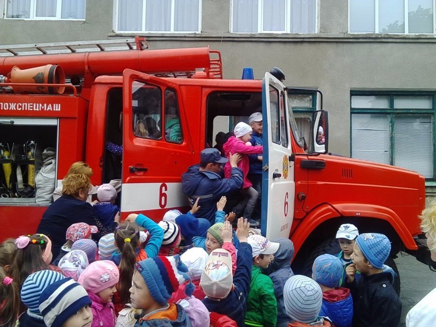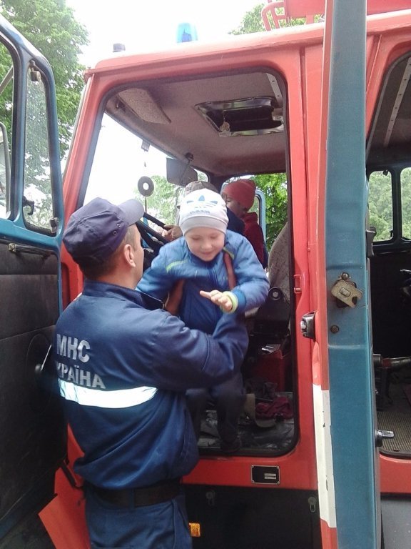 Діти буквально штурмували кабіну рятувального автомобіля, що заїхав на подвір’я дошкільного навчального закладу. Кожен прагнув відчути себе хоч на мить рятувальником: малюки зусібіч оглядали техніку і спорядження рятувальників та приміряли каску пожежного.