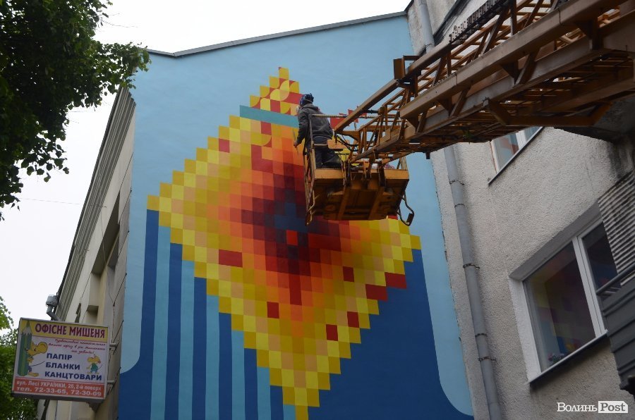 Біля Галереї мистецтв практично останні штрихи на стіну наносить молодий вуличний художник із Луцька Андрій Кальков, який працює над роботою із серії «Круговорот». А команда художників MagicArtGroup завершують найбільше графіті у Луцьку під назвою "Мироносиця". Його малюють біля військового госпіталю (вул. Лесі Українки, 18, - ред.), таким чином художники хочуть віддати данину нашим воїнам.