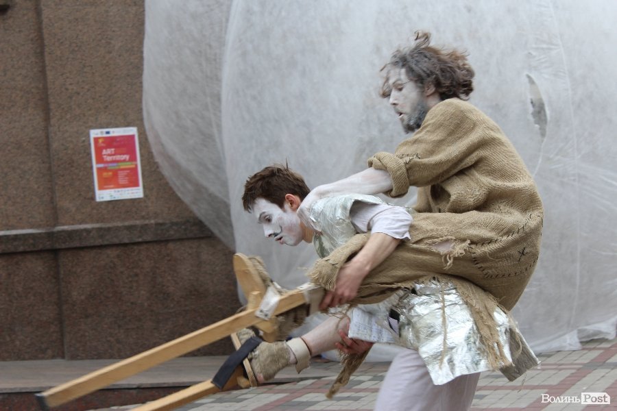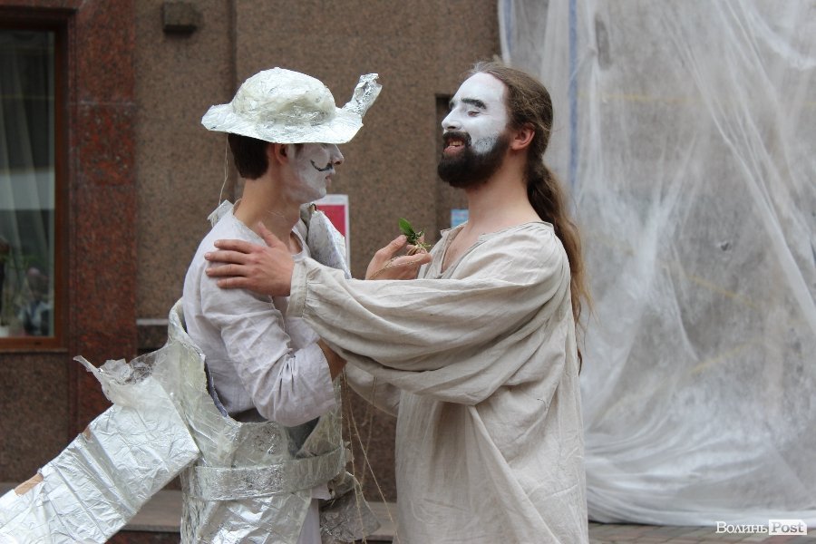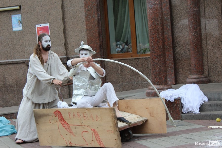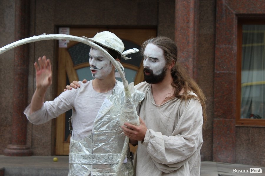 Ходулі та бійки борошном - у рамках фестивалю мистецтва «Art territory: місто творців» вчора, 24 травня, білоруський експериментальний театр "EYE" представив лучанам адаптацію відомого сюжету Сервантеса «Дон Кіхот».