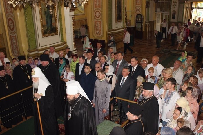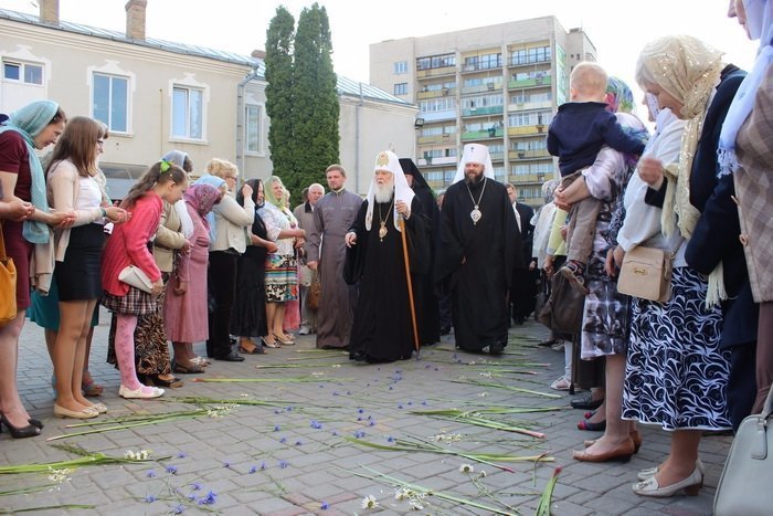 Біля кафедрального собору Святої трійці у Луцьку надвечір вчора 31 травня зібралися волиняни різного віку та статусу. На Театральному майдані, перед входом до храму, предстоятеля УПЦ КП у супроводі митрополита Луцького і Волинського Михаїла зустрічали політики та віряни.