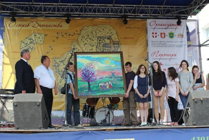 “Саме завдяки їм ми маємо можливість сьогодні відпочивати під мирним небом”, - сказав він. Також подякував організаторам фестивалю, які створили гарний настрій, атмосферу тепла, позитиву, радості, гарного настрою. Власнику готельно-ресторанного комплексу «Острів» Миколі Барабашу, який гостинно прийняв учасників фестивалю, вручив картину, створену вихованцями Луцької дитячої художньої школи. Полотно написали вісім юних художників під керівництвом викладача Віри Конської.