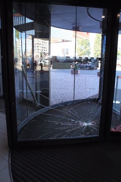 Хлопчик опинився між двома скляними частинами, і як стверджує дехто зі свідків, всунув ногу між двері. Результат такого інциденту – малий у лікарні – двері потрощені татом, який визволяв дитину з пастки, ну і звичайно конфлікт з адміністрацією, адже побита стінка від дверей коштує в межах 20-ти тисяч гривень.