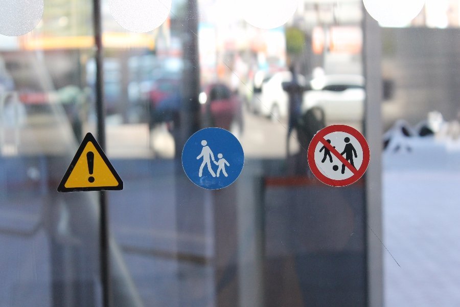Варто зазначити, на дверях на час приходу журналістів були попереджувальні знаки - наклейки на яких зазначалося, що батькам до дверей можна заходити лише тримаючи дитину за руку.