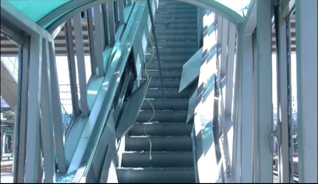 На перонах - повалені колони, вибиті шибки у самому приміщенні вокзалу, а також зруйнована покрівля.