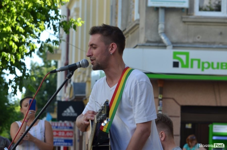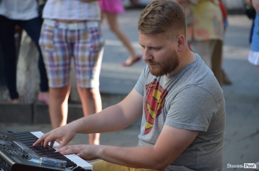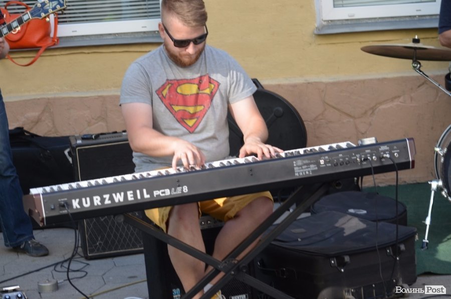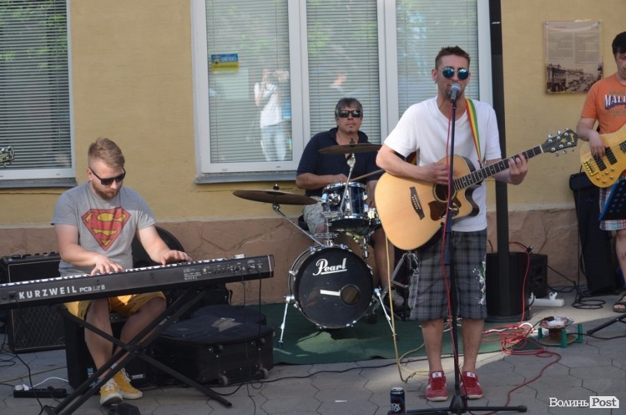 Музиканти вирішили представити себе луцькій публіці просто в центрі міста, відтак розставили апаратуру на асфальті та просто почали грати. Вже скоро публіка назбиралась сама.