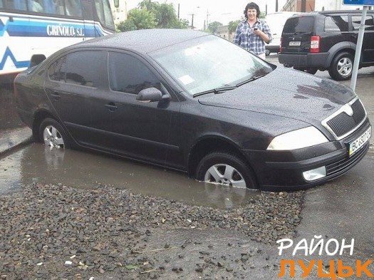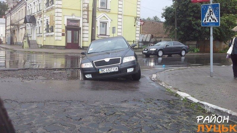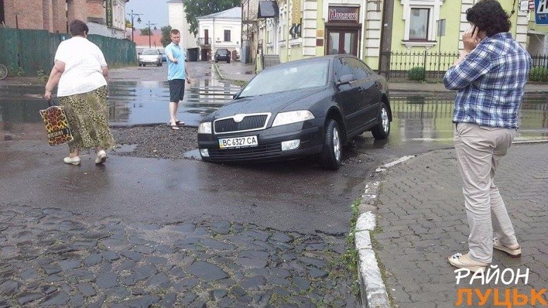Сьогодні, 15 червня, у Луцьку на перехресті вулиць Данила Галицького-Кафедральна провалилось авто.