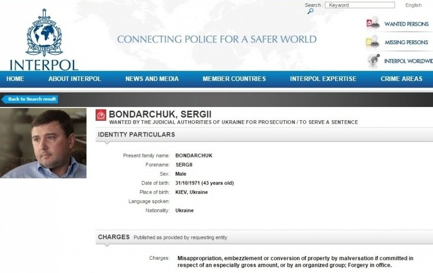 Інтерпол розпочав розшук колишнього нардепа Сергія Бондарчука.