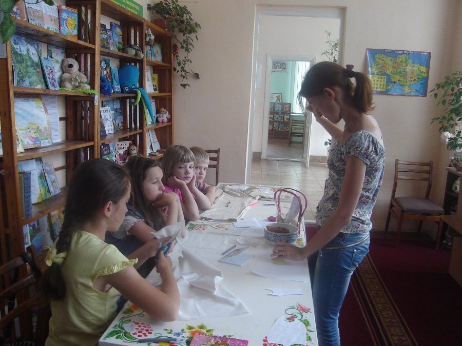 Щопонеділка, дітей, батьків в дитячій кімнаті бібліотеки чекає майстриня Олеся Євгенівна Задонцева, яка навчає всім видам творчості: виготовлення виробів з бісеру, ліплення з глини, навчає навикам художнього розпису, декору предметів інтер’єру, допомагає виготовити текстильну ляльку та прикраси з атласної стрічки і ще багато цікавих творчих виробів.